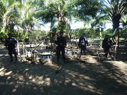 Military guards protect a palm oil plantation on disputed land in Bajo Aguán, Honduras. <a href="http://www.flickr.com/photos/hondurasdelegation/5250976618/in/photostream">hondurasdelagtion</a>/Flickr