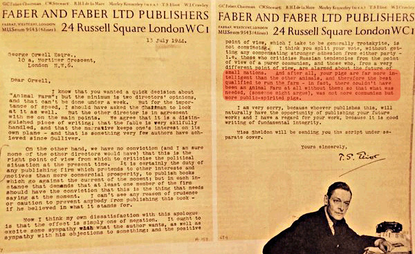 Picture #3: Rejection letter to George Orwell for Animal Farm: “What was needed, (someone might argue), was not more communism but more public-spirited pigs.” So I’ve heard.