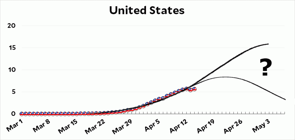 Third, I’m skeptical of the demand for an “underlying model” before you do anything else. You may have noticed that there are lots of models of the spread of COVID-19 and they’re all over the map. One of the reasons for this is simple: if you create a model de novo and then fit it to the data, you can get practically any result you want. Obviously experts have some insight into which models are better than others, but this is still a new virus with a lot of unknowns. And very small changes in model specifications can lead to surprisingly large changes in projections. Right now, an awful lot of the model inputs are assumptions with very little empirical backup because COVID-19 is so new, so you should take nearly any model projection with a big grain of salt.