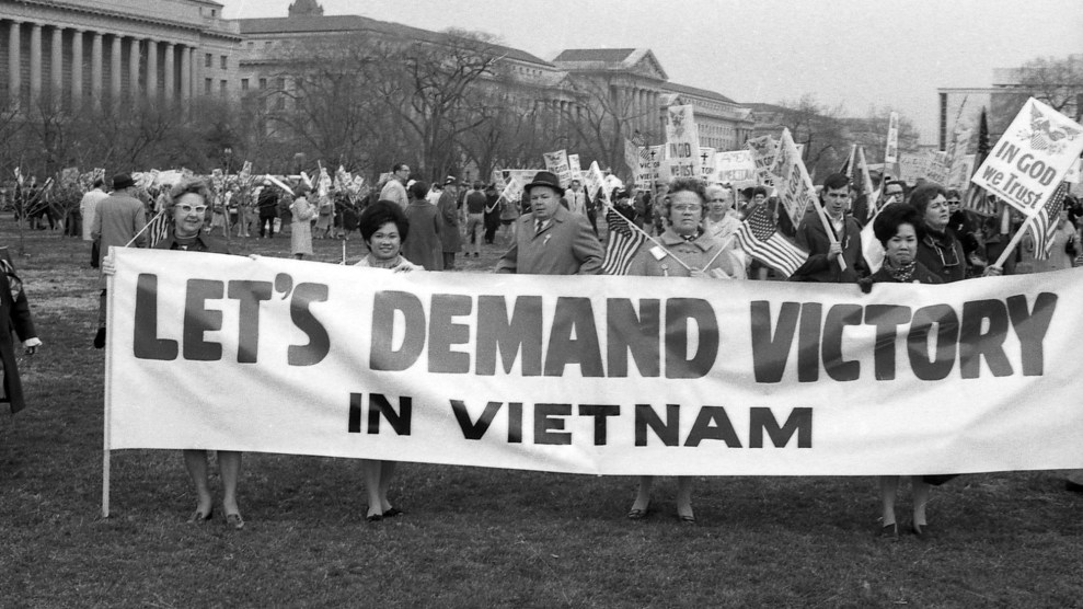 Fundamentalist demonstrators march at the Washington Monument in support of the Vietnam War in 1970. Tom Norpell