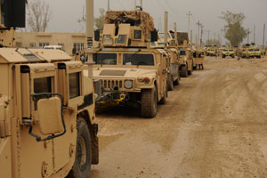 Last week, the Big Picture published a series of recent photos from Iraq—the foreground fight that has moved to the background of the media’s consciousness. Many of the images are striking, but I was particularly drawn to a relatively peaceful shot (by Getty’s Ahmad al-Rubaye) of acres and acres of military vehicles, sitting idle in Baghdad’s Camp Victory. As the photo’s caption notes, all of those vehicles have to be either “taken home, sent to Afghanistan, or destroyed, two months ahead of a deadline that will serve as a precursor for a complete US military pullout from Iraq.”