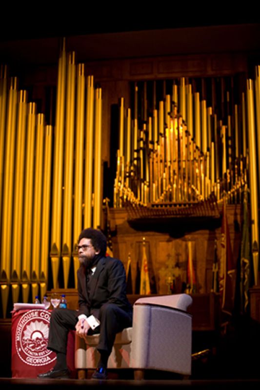 Cornel West is a busy guy: Prince, Talib Kweli, and Jill Scott are just a few of the musical revolutionaries with whom the Princeton professor of religion and African American studies has collaborated. You may recognize 57-year-old West’s bearded, sage-like face from Tavis Smiley’s recently discontinued State of the Black Union conferences or his annual appearances on The Colbert Report. He was also in both Matrix sequels, playing the Zion Elder, Councillor West. On his albums, of which there are three, West holds forth against a backdrop of great beats and soulful grooves, with lyrics that speak to his vision of creating a nation that works for everyday people. Currently he’s preparing for next month’s paperback release of his 2009 memoir Brother West: Living and Loving Out Loud. In our interview, West spoke about politics, his various forms activism, and why he believes music has the potential to close the widening divide between intellectuals and the public at large.