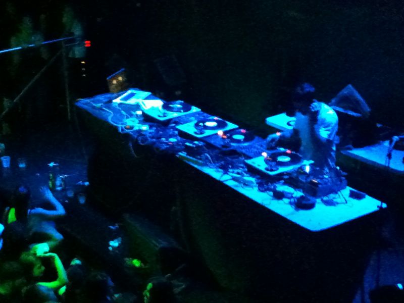 By around 1:17 a.m. when RJD2 (finally) took the stage, the room was so packed that when I lifted my hand I wiped the sweat off a stranger’s forehead. After one last soundcheck fix and a hurried introduction, a murmured “Alright, here we go,” RJD2 jumped into the set. And with one scratch of a record he captured the focus of a few hundred loosely attentive people.