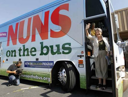Back in April, Congressman Paul Ryan trotted out his Catholicism to justify a budget plan that carves deeply into social welfare programs. Then the Vatican slammed nuns for spending too much time fighting poverty (instead of hating on gays). Rather than cave to the Pope’s agenda, a bunch of Sisters in the US decided to affirm their commitment to the poor through a two-week-long, nine state bus tour meant to highlight how federal budget cuts hurt those on the margins.