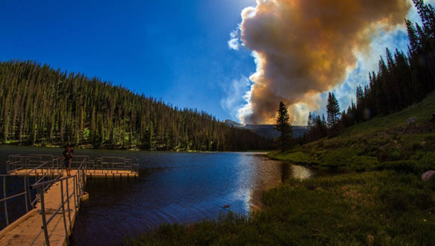 The 2013 West Fork Complex wildfire seen from Lake Alberta in Colorado.<a href="http://whoismatt.com/wp-content/gallery/pagosa-timelapse/lake-alberta-wildfire.jpg">Matt Johnson</a>