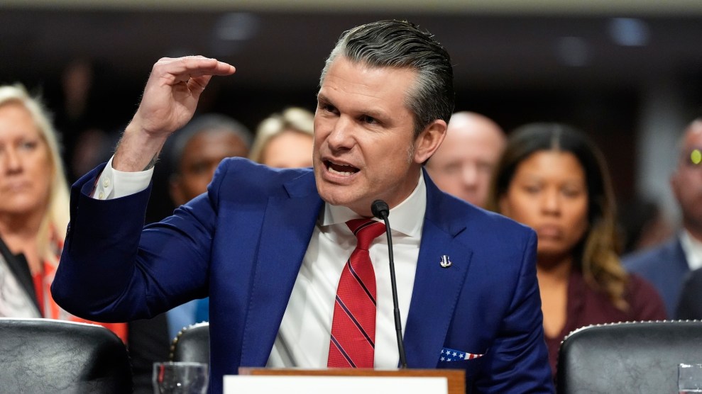 There were also allegations that he was forced to step down from two veterans groups—Veterans for Freedom and Concerned Veterans for America—due to financial mismanagement, sexist behavior, and drunkenness. A lengthy New Yorker investigation found that, while at VFF, Hegseth sent a letter to donors admitting that the organization had less than $1,000 in the bank and more than $400,000 in unpaid bills. The investigation also found, based on a whistleblower report from his time at CVA, that Hegseth had to “be restrained while drunk from joining the dancers on the stage of a Louisiana strip club, where he had brought his team.” A separate letter claimed that, while on a tour in Ohio, Hegseth drunkenly chanted, “Kill All Muslims! Kill All Muslims!”